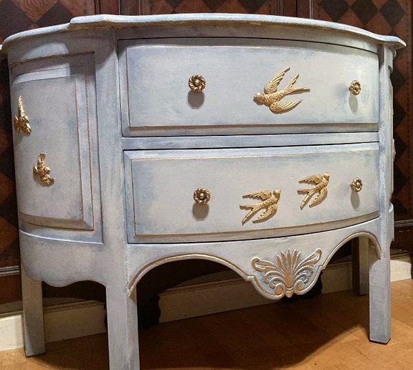 - We cleaned, filled, sanded, primed, added layers of creams and blues for a beautiful cloudy sky look. Then I applied hand poured moulds of birds, gilded and sealed for durability.