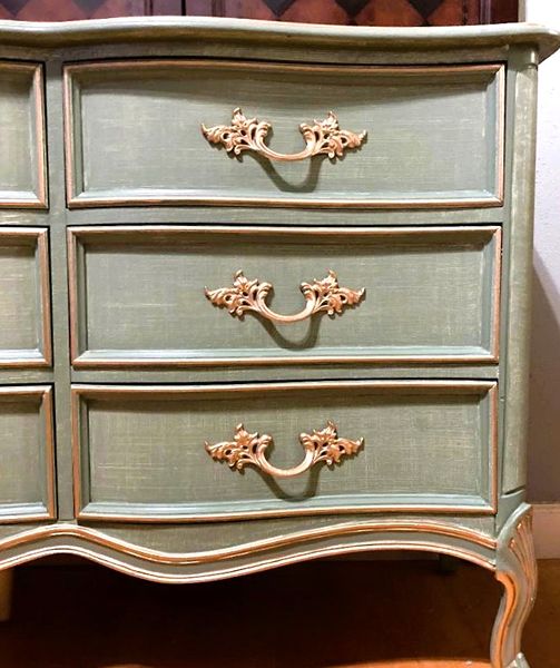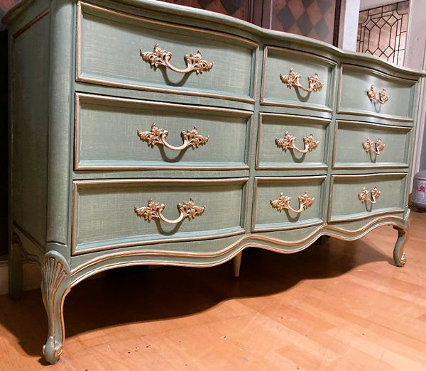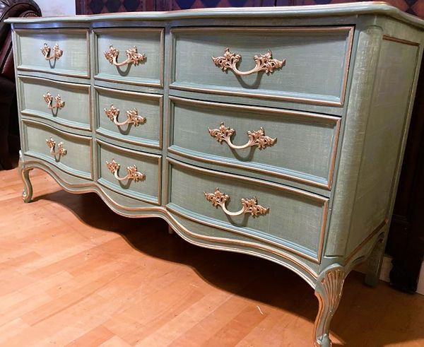 Linen Textured, 9 Drawer French Country Dresser in Thyme Green