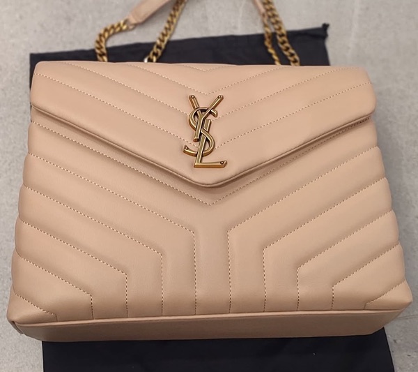 Saint Laurent / Calfskin Y Quilted Monogram Medium Loulou Chain Satchel Shoulder Tote