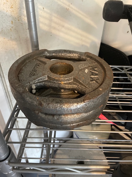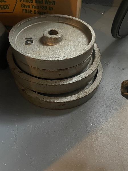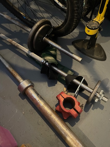 2 straight bars w collars plus 2x25#, 8x10#, 2.5,5