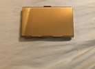 Made in the USA. Has wood top and solid brasscase. Perfect for business cards or credit cards. Small scratch on the bottom. Asking $5.00.