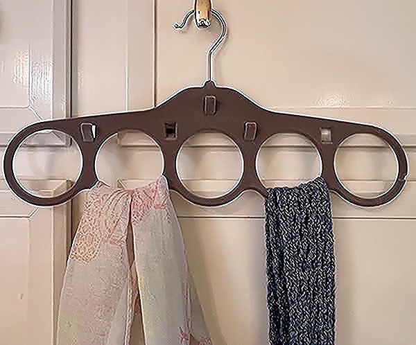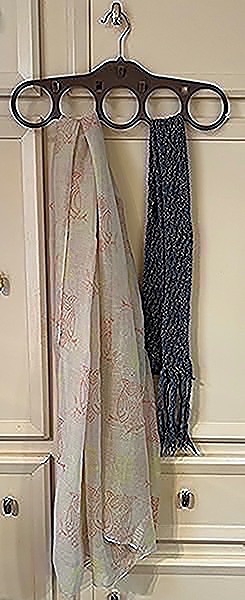 Scarf hanger- to help keep your scarves and belts organized on your closet rod. Holds 5 plus scarves/belts. (Small flaw on right side but only cosmetic)…$12 firm