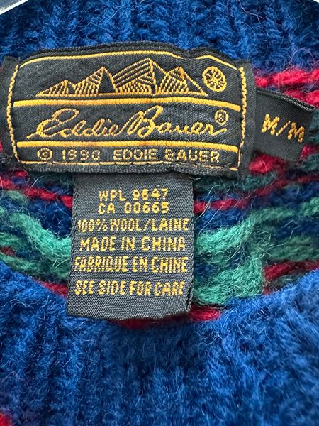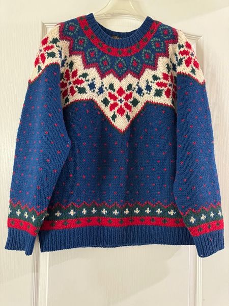 100% wool blue and red patterned knit sweater with Nordic design ** Size Medium ** Like new condition