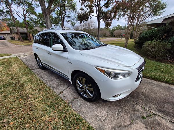 IF YOU SEE THIS LISTING, the car is still available. 2014 QX60 hybrid in great running condition, well maintained, and garage kept. This used to be the top of the line trim with all options included. This is a great car for a large family, road trips, and to haul things. 149,600 miles. CLEAN TITLE IN HAND. Everything works and runs like new. The catalytic converter will need to be replaced before next inspection (around $1500). I don’t have the time to change it so pricing appropriately for a quick sell. Title in hand. No low ball offers please. All reasonable offers will be considered. - 360 eagle eye view - DVD player with dual screens and remote - heated and cooled seats - premium bose sound system - power seats - 2 key fobs - moonroof and panoramic roof - Quality all weather mats all through the car, including back Has some scratches and dents as shown in the pictures. Clean title. Located in 77380, Spring area. If you see this listing it is still available. Thanks for looking.