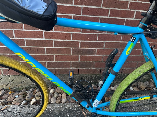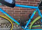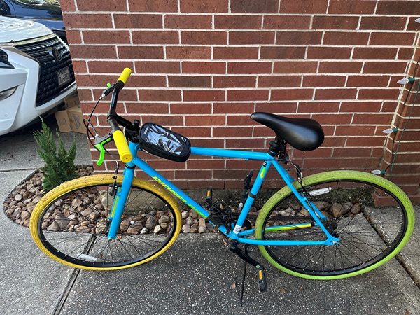 Selling a Kent 700c Men's Ridgeland Hybrid Bike in a custom blue, yellow, and green color scheme.