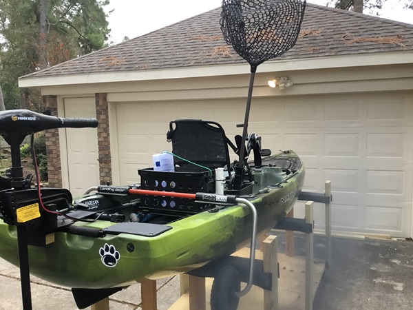 Minnkota trolling motor if you don't feel like pedaling or paddling. Comes with an arm extender so you can drive from the seat.