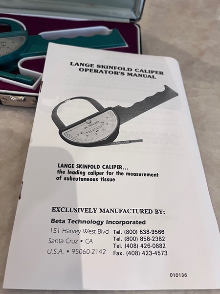 Lange skinfold calipers for measuring body fat;with manual. Like new.