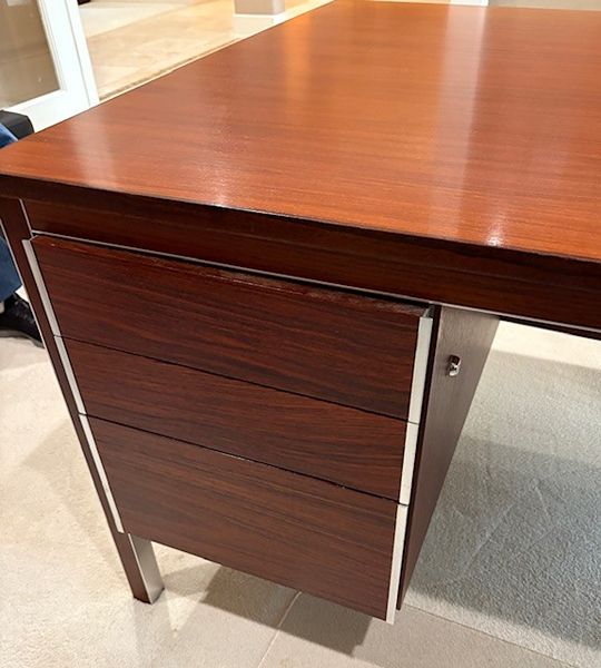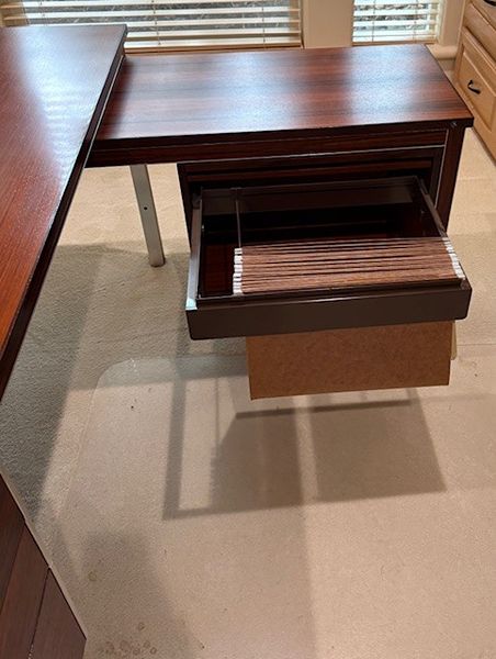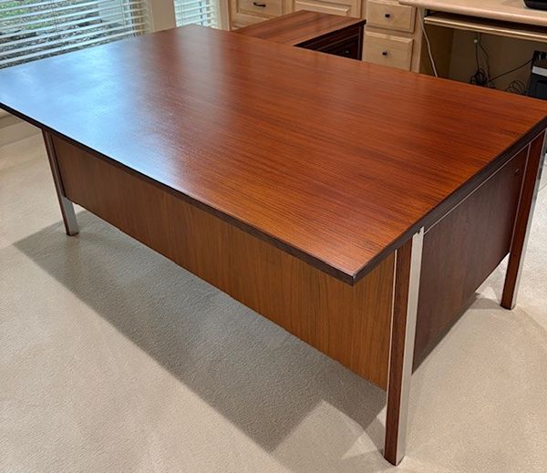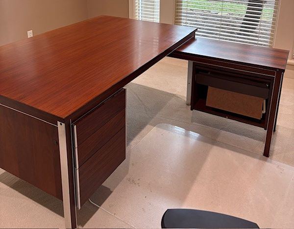 Mid-Century Danish Teak desk in extremely good condition. It's 63" wide and 68" deep (side of extension). $750 or best offer.