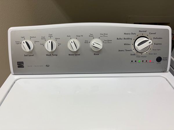 White top load series 300 Kenmore washing machine with triple action agitator. 27" x 35" Lightly used and in great condition.