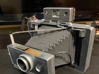 For sale is a retro Polaroid The Button Land Camera, circa 1980. Includes original box, owner's manual, flash bar with three bulbs remaining, and owner's registration card. The camera is in excellent condition and the box is in fair condition, given it's age. The camera uses SX-70 film, or the camera can be modified to accept 600 film. Fun time-zero point and click pictures. Thank you.