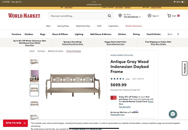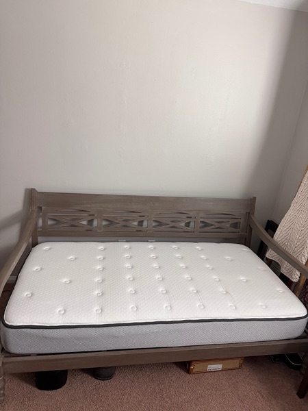Beautiful daybed in perfect condition for sale! This will look great in a studio, bedroom, student room or sun room with a bohemian vibe. Twin mattress and cover (not shown here) included. Color is antique grey and is made of solid rubber wood material. Size 78"W x 43"D x 36.75"H, 73.85 lbs.