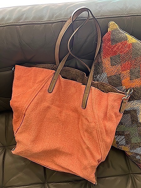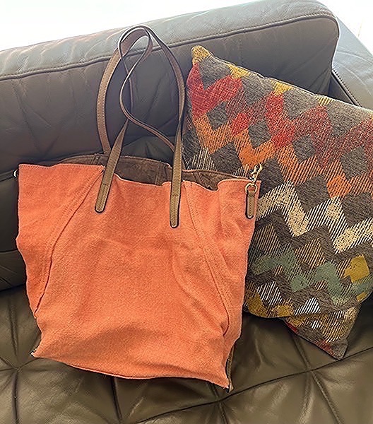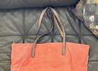 Coral canvas tote bag with faux leather straps. Reversible and comes with attached coin purse…$25 firm
