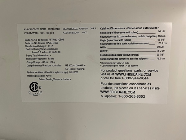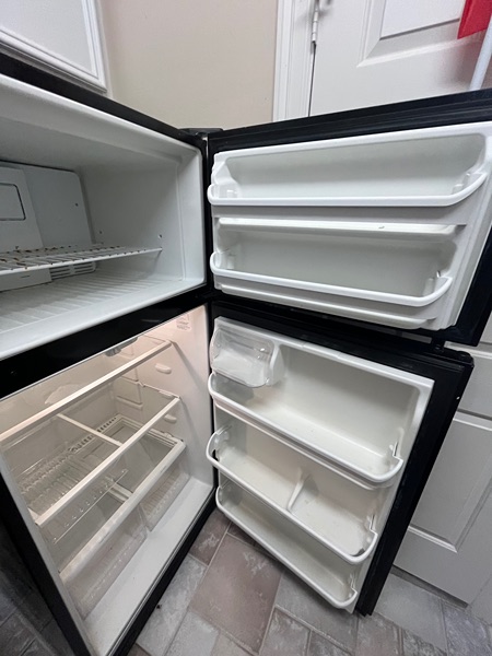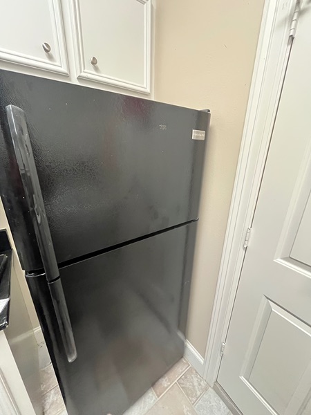 Medium sized Frigidaire black refrigerator from our utility room. Model model information in photos