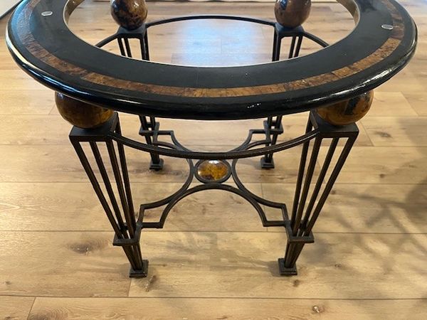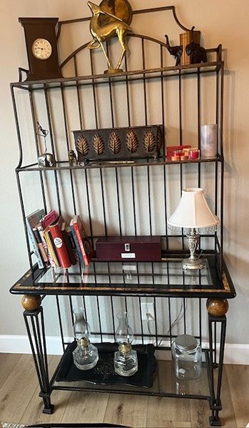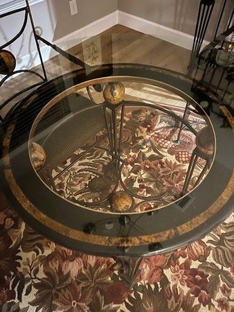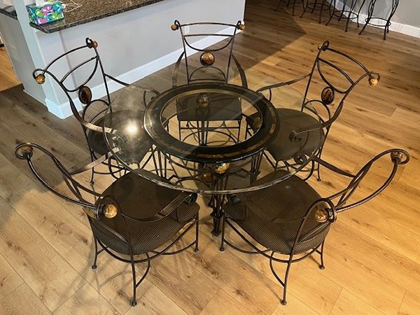 Wrought Iron Round 50" Glass Dining Room Set W / 5 Chairs + Baker's Rack