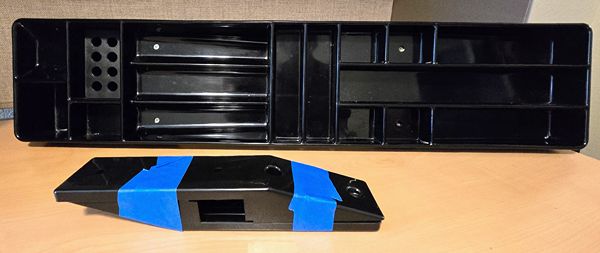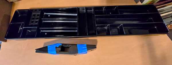 This "Optima" brand art tray offers 16 storage compartments and is made of durable plastic. If desired, the tray offers both left or right side mounting to art table, etc. Mounting hardware is included. Pictures show top and bottom of the tray with set of brackets taped together. The tray measures 31"L x 7"W and is in excellent condition with no cracks or chips. Price is $35 - cash only. If interested text or call 281-825-9606. Thank you.
