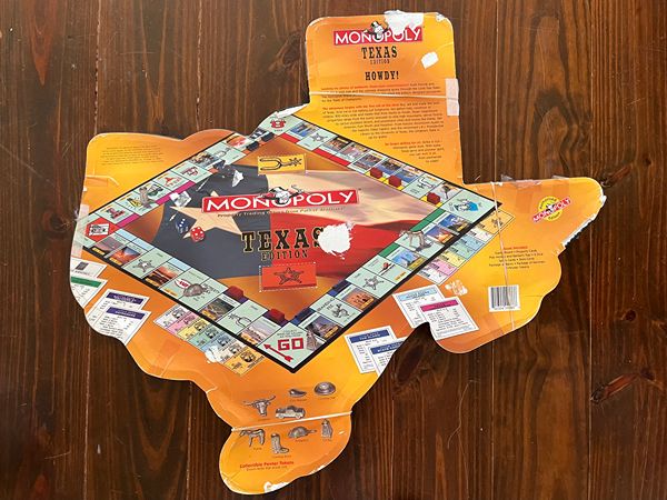 Hasbro Texas Monopoly Board Game 1999 Edition. Includes all pieces, board, instructions.  See photos.
