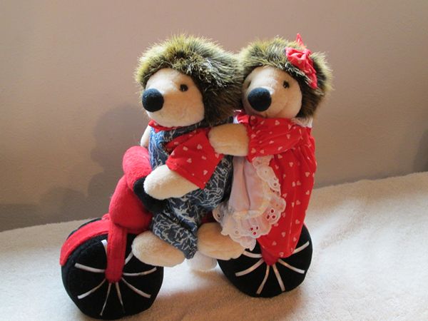 Cute hedgehog bikers...9 1/2" long and 10" high.