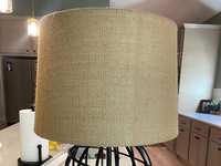 19" diameter, 17" tall, chain is 31" long