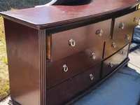 High top wood dining table with pop up leaf and 8 chairs. 54" square with leaf open.