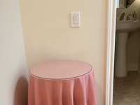 Wooden, rolling utility cart with cabinet. Nice paneled side that you may be able to reverse. Just needs a wipe down…$40 firm