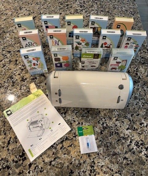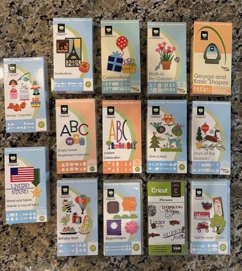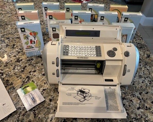 Includes the CRICUT machine, 14 different cartridges for numerous different shapes and occasions, along with an unopened package of 2 new deep cutting blades. Excellent condition, barely used.