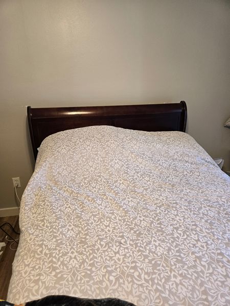 Full bed, Box spring, mattress, metal frame, and wood headboard. 300 obo