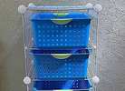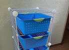 Organizer rack with four Sterlite blue plastic bins (large ultra size 16” x 13” each). We used for Lego’s but you can use it for anything!…$40 firm