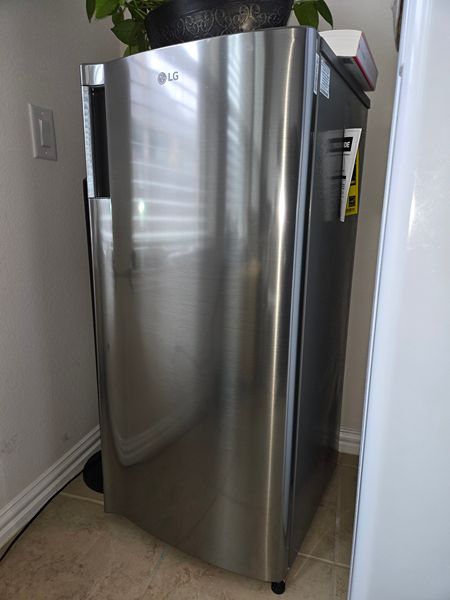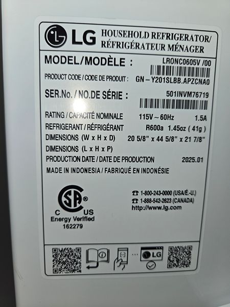 LG 20.63 in. W. 6 cu. ft. Single Door Top Freezer Refrigerator with Inverter Compressor & Pocket Handle in Platinum Silver LRONC0605V