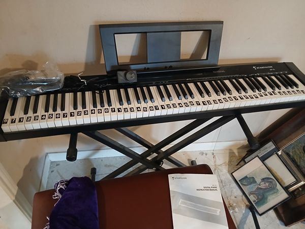 I have a barely use keyboard which I don't need. I have a music stand and leather bench with storage included.