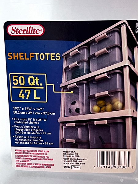 Three 50 Qt Sterilite Bins + 2 Ikea Rolling Bins - 6 bins totali