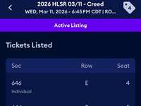 Currently have 4 tickets each for Creed, Lizzo, Shaboozey, and Lainey Wilson. Asking $100 per ticket. Tickets are in Section 513, Row G, Seats 7-10 (front row, middle). Really nice unobstructed view, as shown in picture taken from these seats at last year's rodeo. These are also listed for sale on AXS at the same price if you are more comfortable purchasing directly through the AXS site.