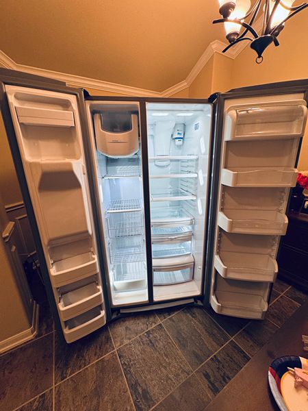 GE PROFILE SIDE BY SIDE REFRIGERATOR/ USED, LIKE NEW, WIDE 36IN, 35IN DEEP, 69.75 TALL WELL KEPT, CLEAN, EVERYTHING WORKS GREAT. WATER DISPENSER, ICE DISPENSER, CRUSHED ICE. EXTRA STORAGE BINS IN FRIDGE AND FREEZER.. LOTS OF ICE