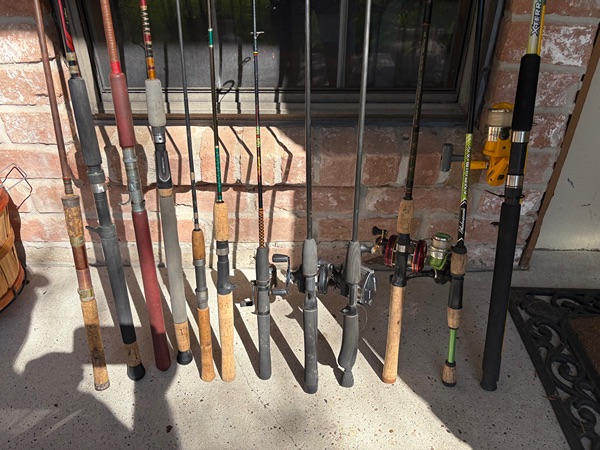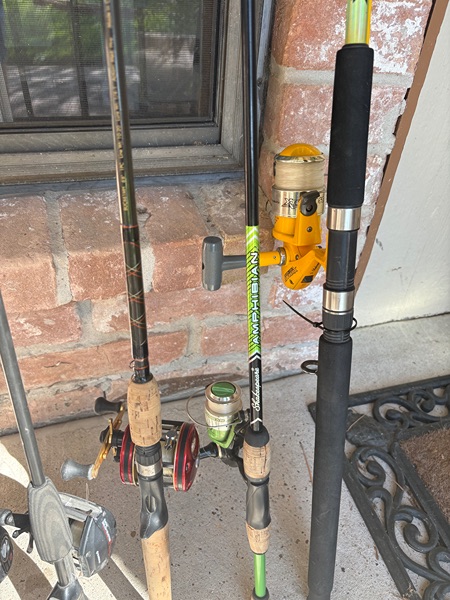 Great deal on 13 fishing poles and reels.  6-- combos. All in working condition