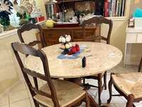 Super comfy, oversized chair and ottoman. Chair has been in the garage so it does need to be cleaned. No holes or chairs. Super comfy. You will love it.