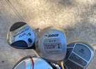 Also included is a bag of several tees, 4 used golf balls, plus a sleeve of new Nike Spin Control balls (3) a sleeve of new *rare* Nike Mojo balls (3), and 2 divot tools. Finally, a used FootJoy glove (left hand) is included to make the set complete.