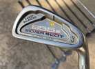 The set includes Tommy Armour irons, 3-9, plus pitching wedge. Also includes a Northwestern sand wedge, Cougar Rhythm II putter, a Never Compromise Z/I Delta 2 putter with cover, an oversized driver, 2 "1-woods", and a Big Bertha steelhead plus 5-wood (see photos for details).