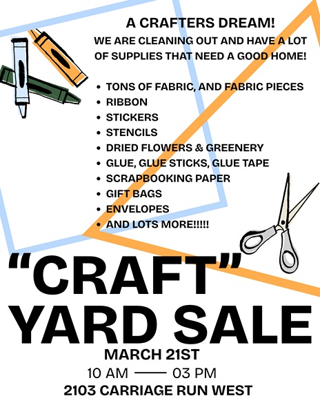 Saturday, March 21st from 10am - 3pm at 2103 Carriage Run West