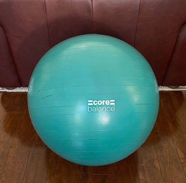 XXL Core Balance Exercise Ball, 75-80 cm, teal, with pump. Good condition with only issue being several black swipe marks, as from a Sharpie. No leaks. Cash Only.