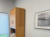 The taller level has 2 drawers. A glass cover fits the top of the desk to protect it. Side table is on wheels. The built in drawer is suitable for 2 size files. There is a pocket behind for private storage. Very good condition. Lower level measures 55 long, 21 inches wide and 26 inches tall. The taller one is 65 inches long, 30 inches wide and 28 inches tall. Asking $100.00.