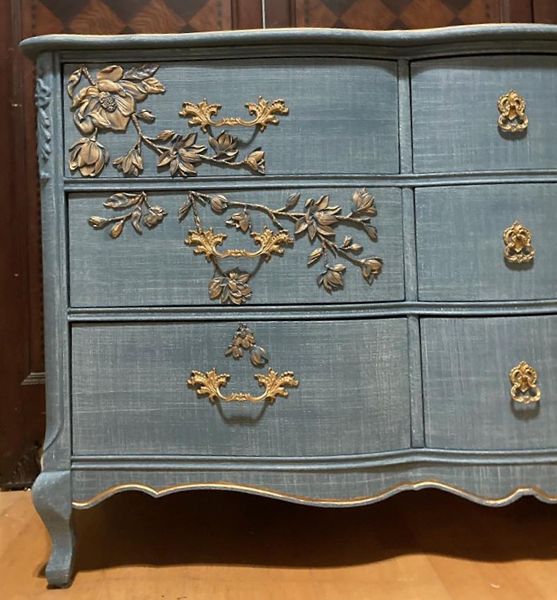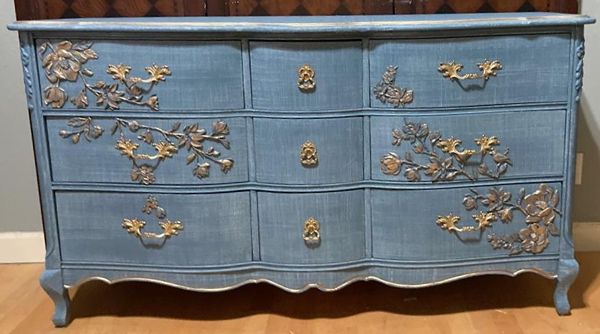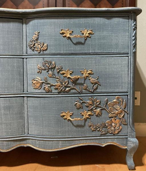 Custom Denim Textured Dresser w/Hand Poured Magnolia Blooms