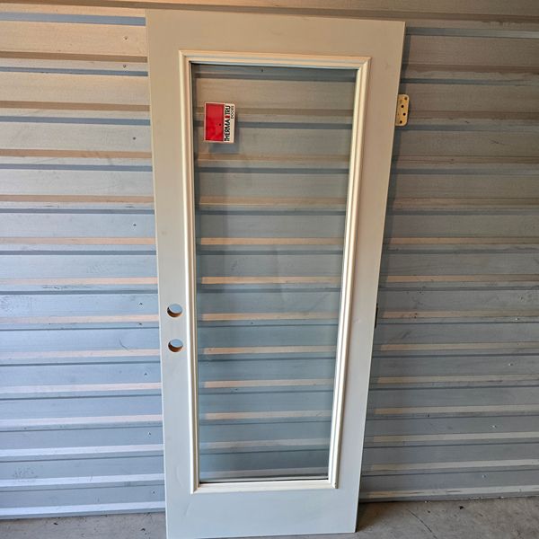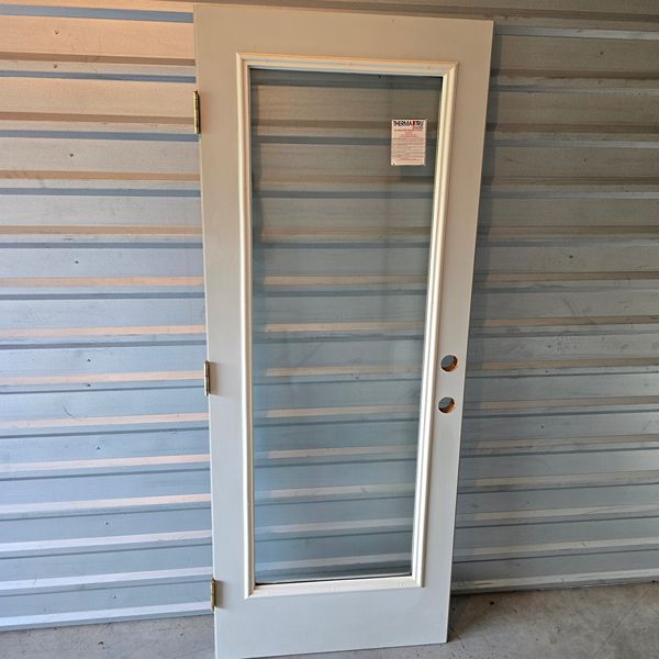 Fiberglass Exterior Door 32 x 80 - Full Lite Low-E Glass Right Hand Swing. Ready to be painted. Located in The Woodlands 77381. Crossroad kuykendahl road and research forest drive. Delivery is available for a fee.