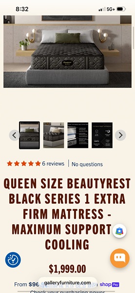 This is a beautiful black beauty rest queen size mattress that's one year-old. There was a mattress pad on top of the mattress at all times. This is a moving sale must move the item they sell new for about $2000. I've included a post from gallery, furniture it sells for $1999