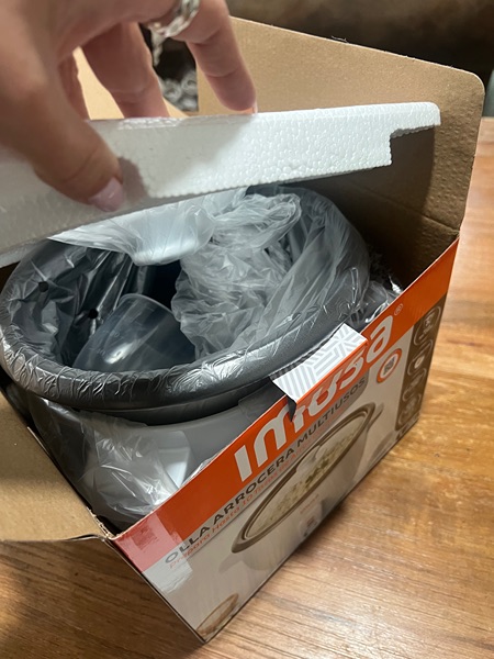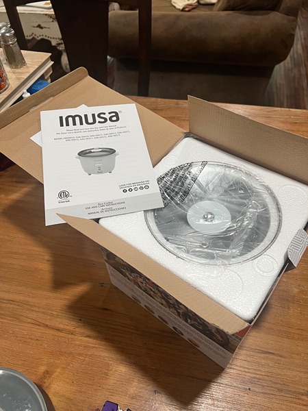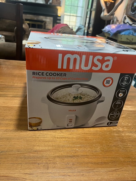 Brand new.  Still in the box.  Never been used. We already have one.  Received as a gift.  This is listed for about 50% off what it sells for on Amazon.  Never thought we would really like a rice cooker.  Makes a difference.