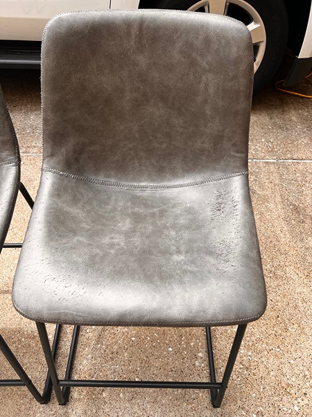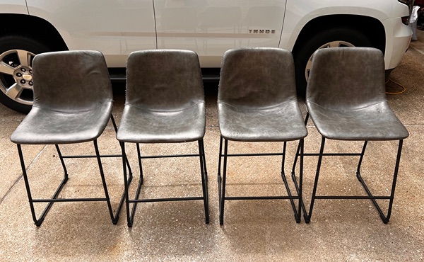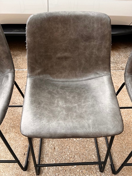 4 barstools. Seat heigth 24", back heigth 36". Steel frame. There are scratches from my cat, you can see in the pictures. Other than the scratches they are solid.