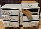 - All drawers are sturdy, dove tailed and glide smoothly in and out on their center wooden rails, with their original polished hardware.