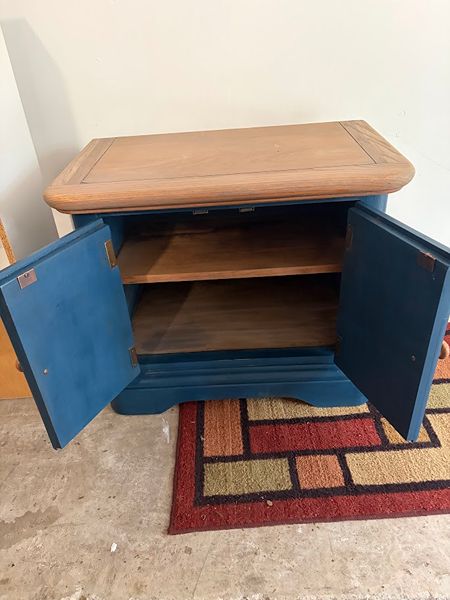 Free cabinet, great for extra storage in a living room, bedroom, or office. It has one interior shelf and is a solid, functional piece.