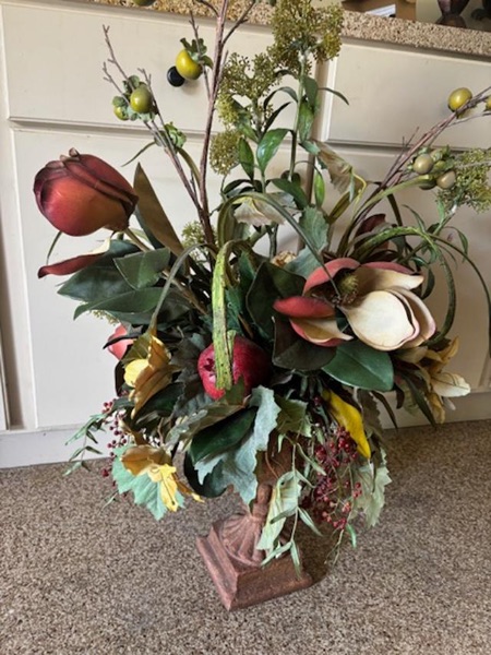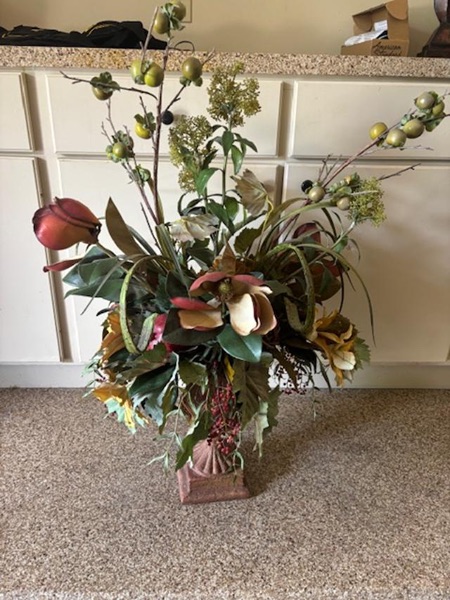 Decorative faux flower arrangement.  Please see pictures.  I am happy to send mroe if interested.  Thanks.