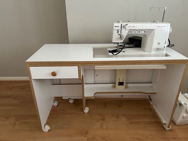 Selling pfaff quilting table with machine. The plastic bobbin opening cover is missing (spare can be easily replaced). Otherwise works