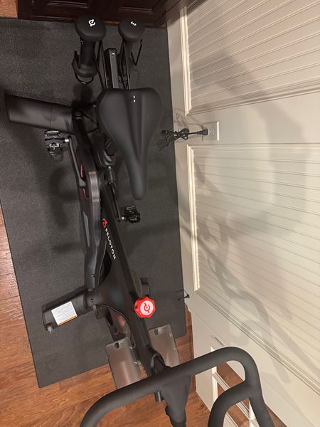 Like New Peloton Exercise Bike - including hand weights and mat. Also includes Venzo indoor bike bicycle pedals that are compatible with Peloton look delta cleats & Shimano SPD cleats