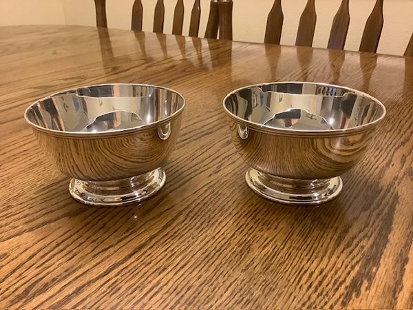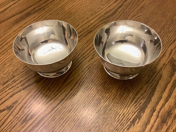 These antique sterling silver bowls are crafted by Lunt and weighing 135 grams with dimension of 4.5" X 2.75"